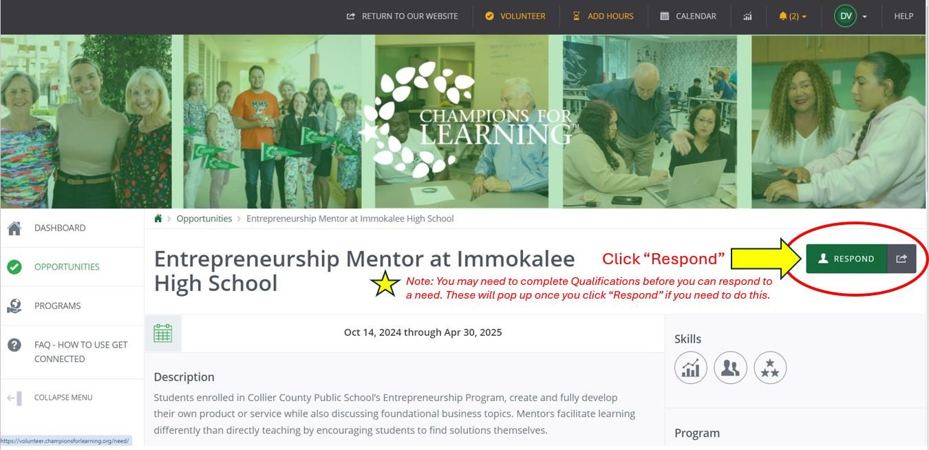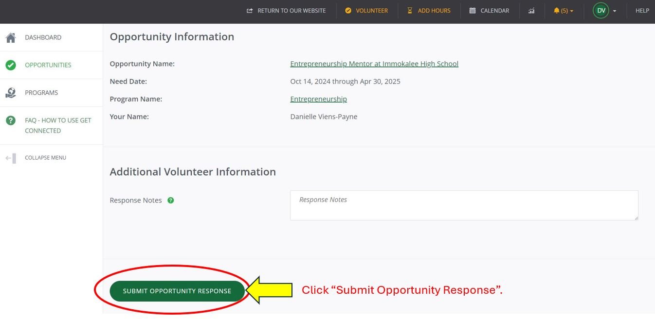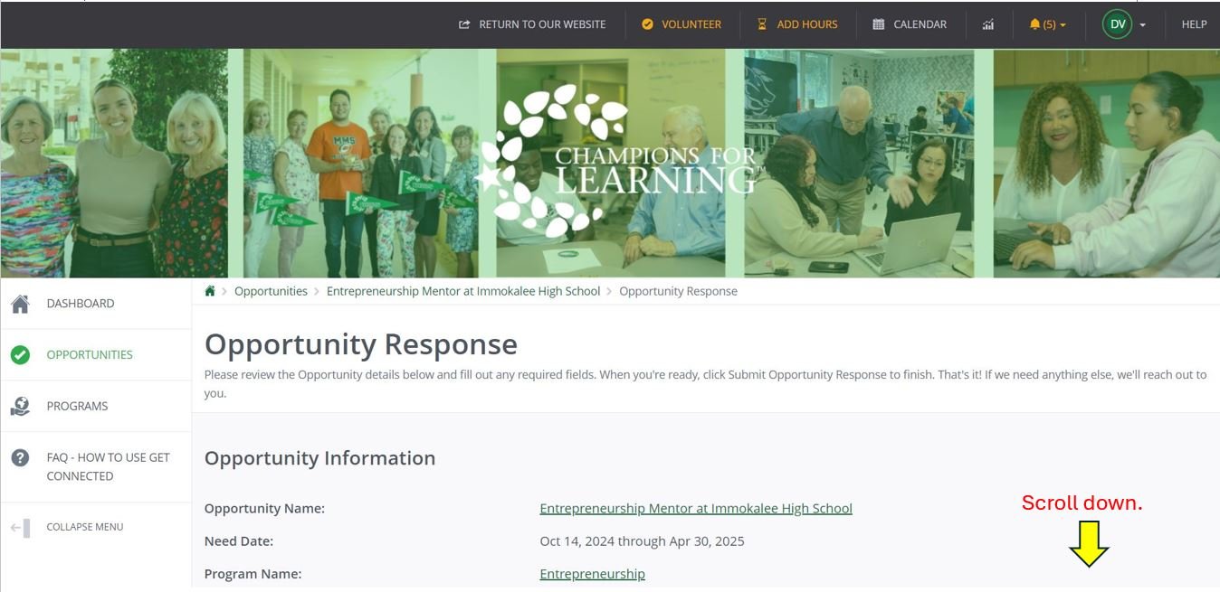 Once you click on the opportunity you are interested in, you will see it expanded like this below. Follow these instructions: